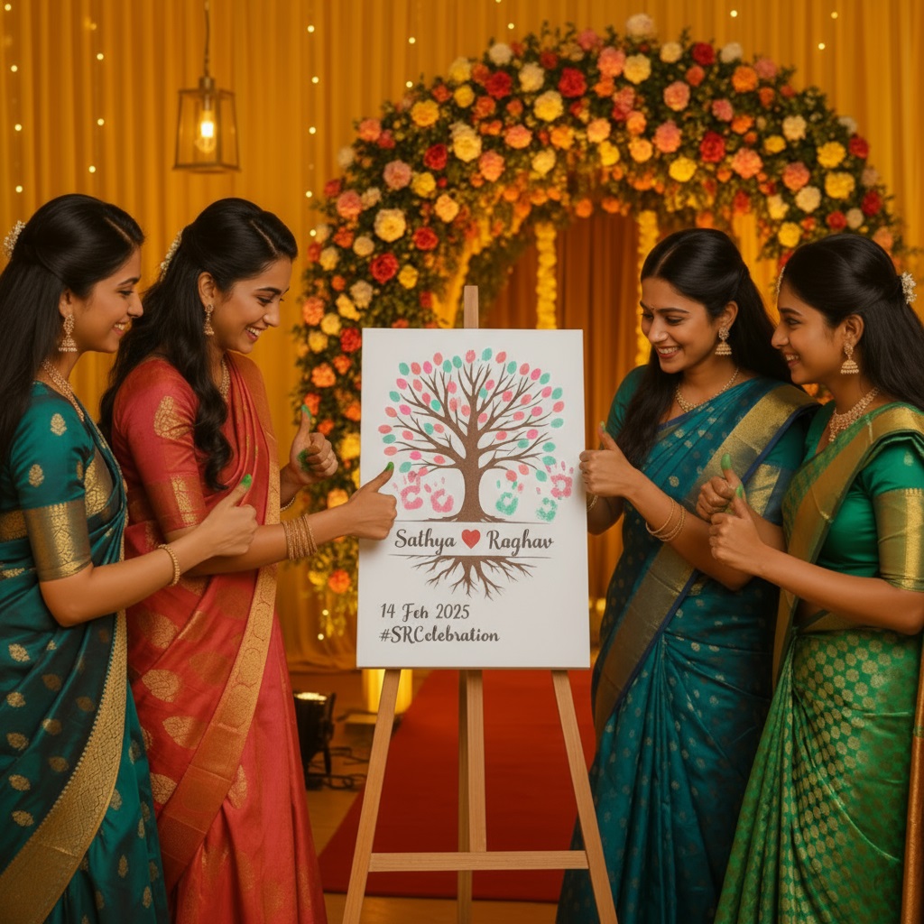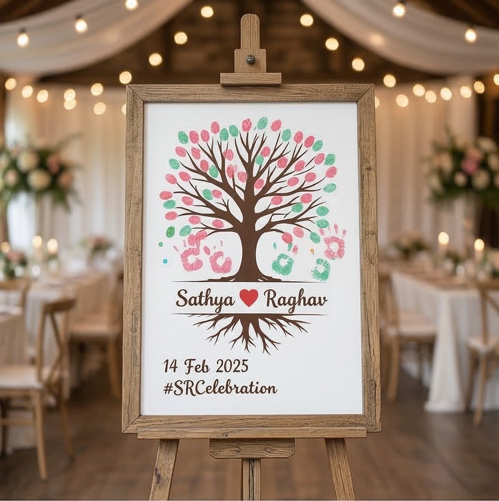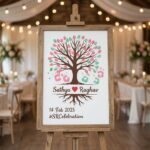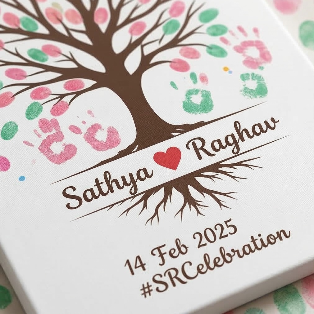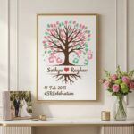 Custom Wedding Fingerprint Tree Canvas Print (17 × 20 inches) with personalised names and guest thumbprint design. Perfect for weddings, baby showers, engagements, anniversaries and special celebrations. Canvas print without wooden frame.